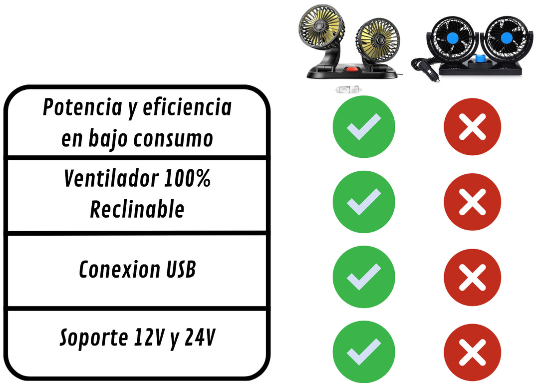 Gira 360° para refrescar cada rincón del vehículo, Doble potencia, doble confort dentro de tu carro